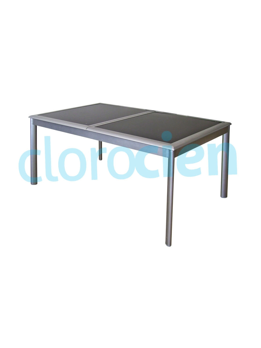 * 160 a 240 x 100 cm * Estructura de aluminio color aluminio * Tapa de vidrio negra Art. 11792